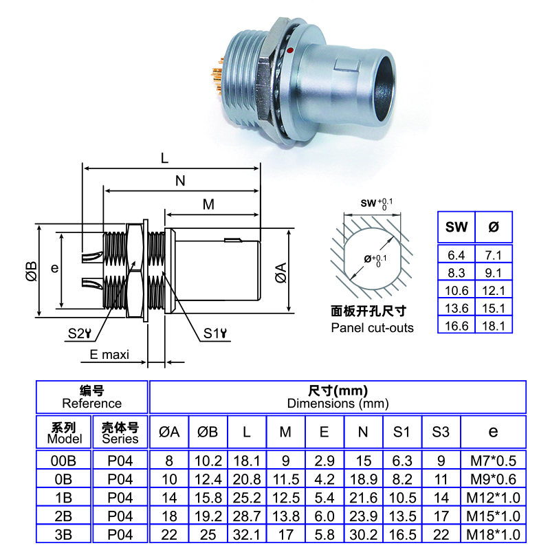 | 00B | P04 | 8 | 10.2 | 18.1 | 9 | 2.9 | 15 | 6.3 | 9 | M7 * 0.5 |